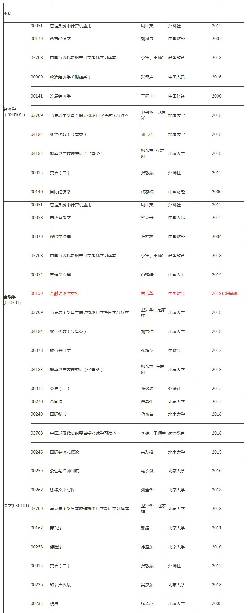 2020年4月安徽自学考试(本科)考试教材版本目录